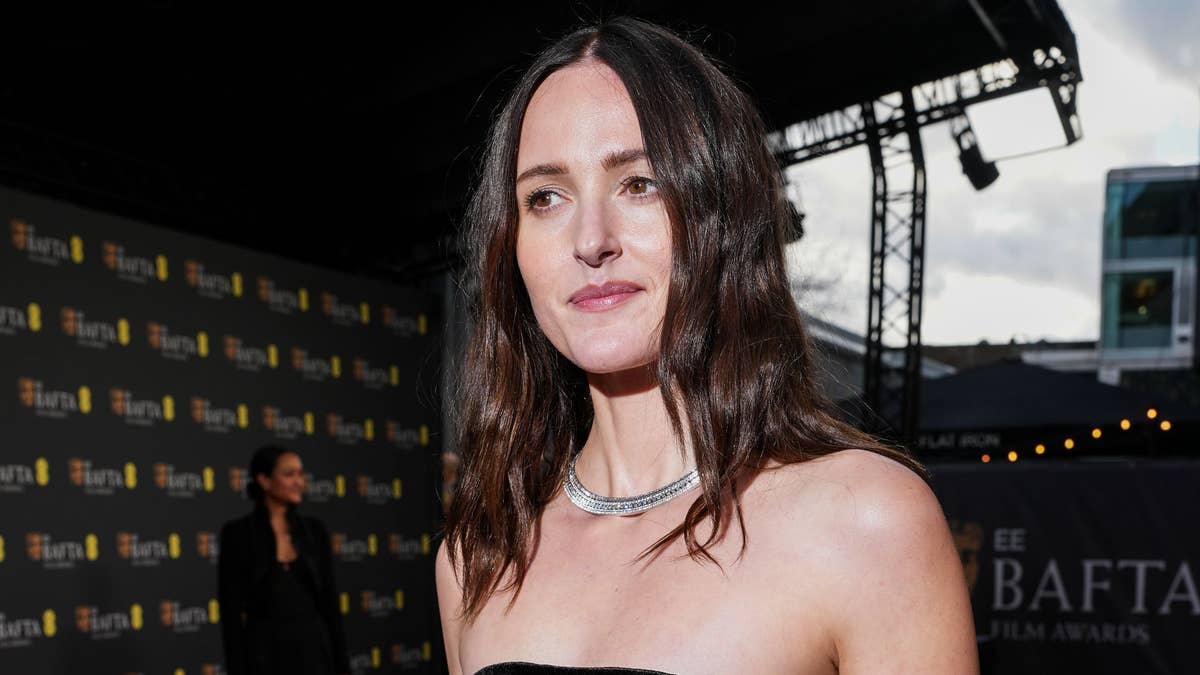 The actress is an ambassador for Louis Vuitton and frequently wears the designs of the maisonâs creative director, Nicolas GhesquiĂšre. For the BAFTAs, Renate looked stunning in a black gown from the French fashion house. The garment featured a bandeau neckline with a large asymmetric cutout on the bodice.