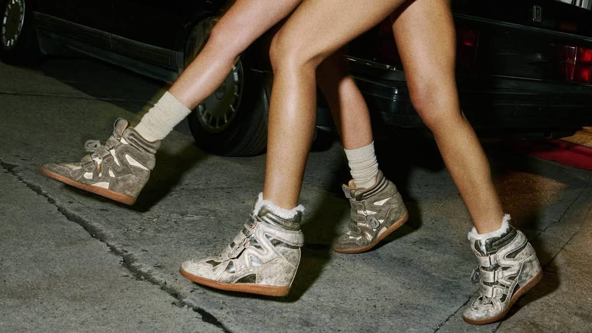 Let me take you back to 2012. French house Isabel Marant debuts the iconic Bekett Sneaker, defined by a suede exterior, an incorporated wedged heel, a high top silhouette and velcro-strap detailing. Within months, the kicks have been worn by stars such as Jennifer Lopez, Kendall Jenner, Lindsay Lohan and, perhaps most famously, Beyoncé – who sported a pair for her Love On Top music video. Zendaya even took to Instagram sporting an off-white pair, visible beneath a grainy, old-school Valencia Instagram filter.