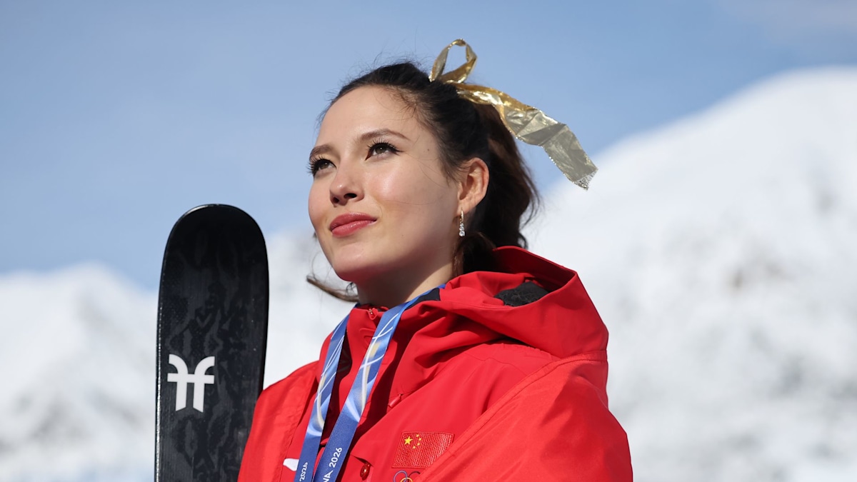 The Chinese-American freestyle skier, who was born in the United States but is competing for her mother’s homeland of China, already the most decorated freestyle skier in Olympic history, broke records when she won gold for the women’s halfpipe in freestyle skiing on Sunday, the last day of the Olympics.